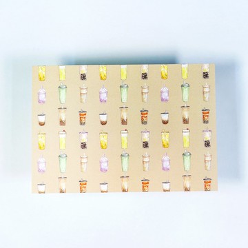 【我最喜愛的手搖飲】水彩插畫 花樣明信片 珍珠奶茶 廢水