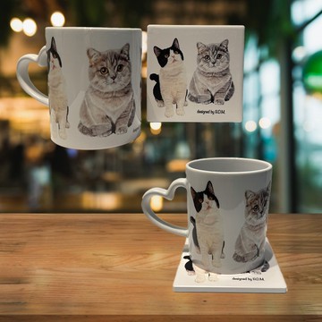 雙貓咪 陶瓷馬克杯 + 杯墊 | 禮品套裝
