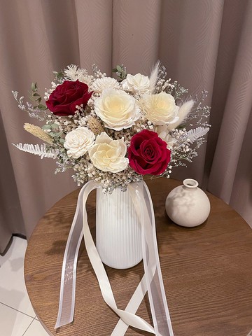 酒紅香檳永生花捧花 新娘捧花 乾燥花捧花 手綁花 結婚捧花 登記