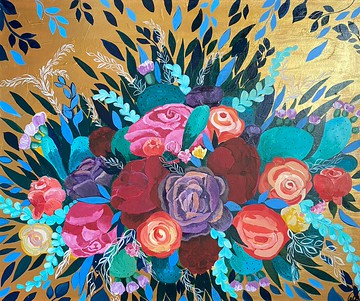 粉紅色玫瑰繪畫花卉原創藝術花卉花束牆藝術壓克力畫