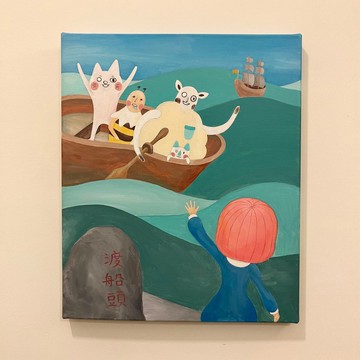 充滿童趣世界的插畫中,可愛的綿羊先生、活潑的阿格里貓,還有討喜的松露哥與小蜜蜂,正搭著小船在水面上悠閒地滑行。🚤 而在岸邊,一位小女孩情不自禁地揮手為他們送行,這一幕實在讓人心都融化了!💖 - 尺寸:38cm寬 x 45.5cm高- 材質:畫布 + 壓克力手繪工藝,獨一無二的創作🎨