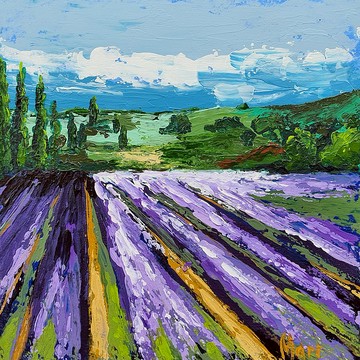 托斯卡納繪畫原始薰衣草田意大利普羅旺斯鄉村風景