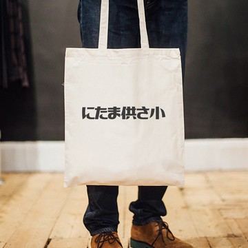 にたま供さ小 偽日文 Ni-Ta-Ma供Sa小 帆布環保大容量購物袋 米白