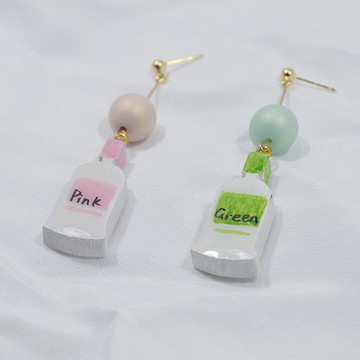 藝術生 粉色與綠色 pink green 瓶裝顏料造型耳釘耳環 手繪木製