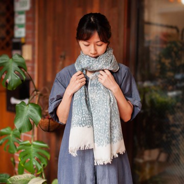 樹影絲棉披巾/圍巾_藍_公平貿易