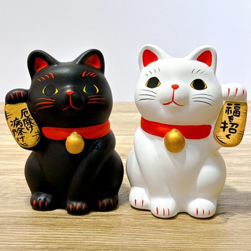 【幸運雙星】日本谷中堂招財貓 | 黑 白 一對