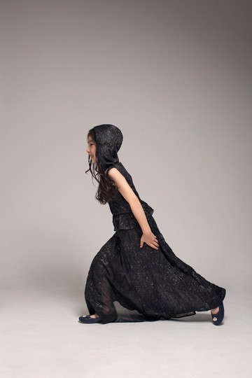 黑色綴飾寬簷帽。蓬鬆的寬簷帽,綴飾垂至地面的流蘇。