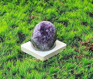 【能量礦石名稱】能量擺飾-天然可愛紫晶鎮 紫水晶 療癒 招財 消磁淨化 智慧 財運水晶[原件出貨]【礦石】天然紫晶鎮 紫水晶[附贈圖片手作水泥底座隨機出貨,礦石原件出貨]【礦石介紹】紫水晶-紫水晶(Amethyst)主「智慧」與「財富與「財富」,屬於智慧型的磁場,對應七輪系統中的眉心輪,能加強記憶力及幫助思考,特別適合精神經無法集中、以及需要長時間動腦費神的學生及上班族,能帶來調整作用。紫水晶能開發智能,平穩情緒,提高直覺力、幫助思考、集中念力、增加記憶能力,增進人際關係,給人勇氣與力量。另外紫水晶是社交之石,有助於遇上貴人,廣結人緣。紫水晶在西方國家也代表著「愛的守護石」,代表高潔堅貞的愛情,常做為情侶的定情石。【尺寸】最長約4.8cm最寬約3.7cm最厚約4cm手工測量都會誤差1~3cm 請理解,請確認尺寸後再購買喔~【關於天然可愛紫晶鎮 紫水晶 】天然水晶、礦物因天然形成,難免會有冰裂、雲霧、礦缺,岩石層缺角,請能理解天然礦物再購買,若您是完美主義,請三思後在決定購買。[包裝]Rainbow品牌盒包裝附贈水泥底座水泥底座為手工製作,手工製作或多或少會產生氣孔、斑駁裂紋或顏色深淺變化,無法100%完美無瑕,敬請理解。【購前須知】-商品皆實品拍攝,因每台電腦顯示或相機拍攝所處的環境光源不同,可能會有些微色差,請體諒!-照片均為實物拍攝,晶石原石原礦類為一物一圖,盡最大可能縮小實物與照片的差距。但由於拍攝技術、顯示器、光線、環境等因素可能稍有偏差,請盡量參考不同角度的各張照片所呈現出的實體效果,最終請以收到的實物為準。- 天然水晶在大自然的雕琢下會有冰裂、棉絮、礦坑、劃痕等自然屬性存在,這是天然晶石的痕跡,同時也是鑒定是否天然的重要標準,請謹慎思考在決定購買.謝謝 ^^