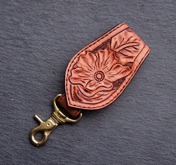 【手工製】唐草皮雕鑰匙圈(黃銅扣具)