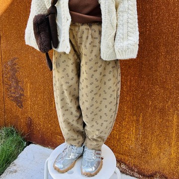 杏色小碎花內絨保暖褲子 / 長褲 童裝