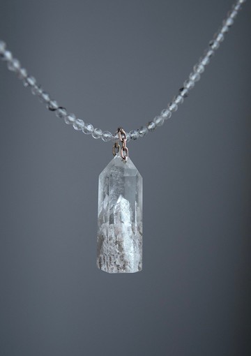 晶中晶 白水晶柱 黑髮晶珠鏈 項鏈