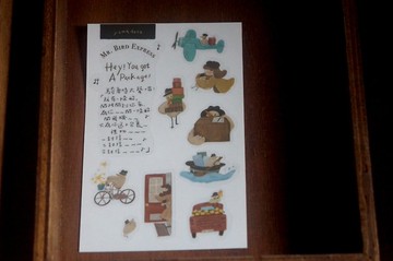 小鳥先生的日記之 騎車時大聲唱:♩♩♩「我有一條船,開阿開到你家,為你~~~開一條船開飛機~~~~只為你送上包裹~~~禮物~~~一封信~~二封信~~~三封信~~~♪」 ※ 大量訂購請先寄信確認數量及運費。※整個外包裝部分,為保護環境會使用舊紙、塑膠包裝袋重用或環保紙包裝哦。 | 貼 紙 尺 寸 | 15x10cm / 一份兩張 產地/製造方式Made In Taiwan / Designed by yamadoro