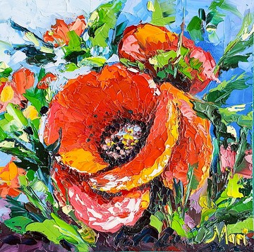 罌粟花油畫厚塗原創藝術紅色花朵印象派藝術