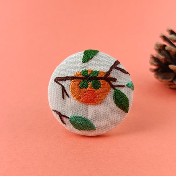 感謝您從眾多商品中選擇瀏覽。九月已悄然來臨,隨著秋意漸濃,我製作了這款秋季美味——柿子胸針。走在路上,看見有柿子掛滿枝頭的家,便能感受到秋天的氣息。外層柿肉紮實,內裡卻是軟糯香甜,美味極了。柿餅的甜味也讓人十分喜愛。啊~ 肚子都餓了呢(笑)背面採用了毛氈、人造皮革,並裝上了胸針扣。無論是搭配服飾,或是點綴在包包、帽子上,都能成為畫龍點睛的可愛配飾。與休閒風格的服飾也很搭。尺寸:核桃釦 38mm材料:斜紋布(米白)繡線胸針扣毛氈人造皮革水果、日本的秋天