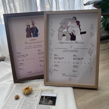 文青復古風格 橫式燙金結婚書約 結婚證書 婚禮 登記 -快速出貨