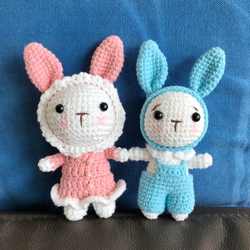 【客製商品】男女兔寶寶造型可愛,可以單隻或一對購買。可自選喜愛的顏色來製作,下單時請備註顏色(請看色版),沒有備註,我們會依照第一張圖片的兔寶寶顏色製作。~《附送掛飾匙扣》;~適合送朋友生日禮物;~作為掛飾,家居小擺設,辦公室小陪伴,均有減壓和心靈療愈的作用;【尺寸】身高約15cm【材質】毛線、填充棉、珠子⭐️【購物需知】~ 本商品為客製化商品,不適用消費者保護法第十九條七日猶豫期間規定,請確認您的需求再下單購買。~ 此商品接單訂製,製作時間需要3-5天,此商品將以香港郵政寄出,故此若希望可於所需時間收到,請預早下單或選擇《順豐》速運方式。~ 請明白人手製作關係,每件商品無論在形態、大小、細節上均可能與提供樣版有些徵偏差啊。【注意事項】~成品包含小物配件如珠子,對幼兒要留意,特別3歲以下幼兒,以防呑下小配件做成危險。~因拍攝光線關係和顯示屏幕不同,照片顏色與本品可能有些微落差。產地/製造方式香港