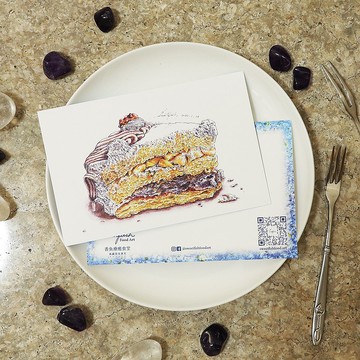 芋泥布丁蛋糕-美食明信片/食物明信片/美食卡片/食物卡片