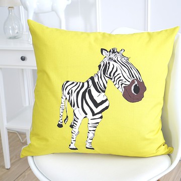 童趣風系列抱枕-斑馬與長頸鹿黃色(1入/50X50CM)雙面設計