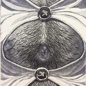 Ojisan「おじさん」-日文的大叔之意。藝術家陳華俊的系列作品多以挑戰世俗眼光的方式作為主題,表現形式則受到動漫造型的影響,在主體的視覺衝擊下,細緻的表現手法則帶來強烈的反差感。藝術家簡歷:陳華俊CHEN, HUA-CHUN火盒子版畫工房負責人 & 現任華梵大學美術系教師1990 中國文化大學美術系西畫組畢業2007 國立台北藝術大學造形研究所版畫組碩士畢業2012擔任藝術家謝里法「舊版新印」版畫展,作品版印顧問,印製謝老師全套版畫作品中華民國版畫學會理事個展2014「Love Like Jazz, Kiss My Ass」 陳華俊版畫個展, 岩筆模藝廊,台北 2013「浮世。人間」個展,大眾銀行敦化旗艦分行,台北 2007「沉重的漂浮版畫」個展,Pethany Larsen Gallery,台北 2006「好好先生敎你愛」版畫個展,北縣新莊藝文中心 2001「開放的壓抑」版畫個展,台北芝山文化展場 1991「禁錮。子宮」版畫個展,台北文化大學學生畫廊--Q.什麼是版畫?A.版畫是一個統稱,指的是運用傳統印刷的技術所創作的藝術作品,具有間接性、複數性的特色,以印刷原理來分類的話,可以簡單的分成凸版、凹版、平版、孔版四個大類,各版種還可細分各種不同的製作技法。近代因電腦科技的發達,還多了數位版這一個分類。Q.什麼是凹版畫?A.凹版畫(Intaglio)凹版指的是在版面使用雕刻、酸水腐蝕等...技法造出凹陷,再將 油墨填入版面凹陷處,運用溼紙張和凹版機印出凹陷處圖像的技法,常用之版材以銅版居多,故一般慣稱凹版為銅版畫。常見的技法如:蝕刻、直刻、美柔丁或是結 合感光做法的照相版,除了銅版之外,鋅版、紙版、實物版或壓克力版,也常作為凹版的製版材料。作品資訊--作品名稱:OJISAN 01媒材技法:蝕刻凹版畫心尺寸:30.5×9.8cm年代:2017限量版數20張,版數隨機出貨。產地/製造方式台灣/手工印製