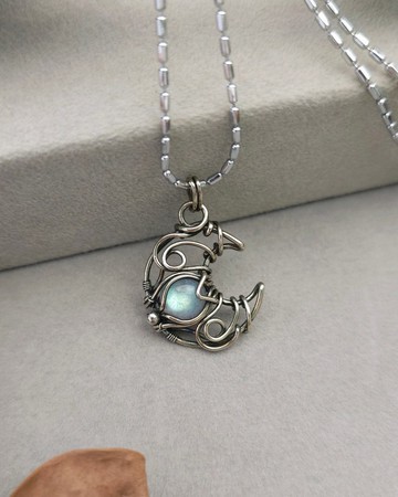 白銅線編織 月亮項鍊透體拉長石規格:31×21mm / 附商品照的合金鏈(有些微色差)月亮不僅是照亮夜空的天體,它在夜晚發光,成為黑暗中的光源,象徵著希望與守護。在各地文化中,還蘊含許多深刻而美麗的故事唷~這款月亮造型的項鍊,選用銀藍色透體拉長石,宛如月亮的柔和光輝,獨特透光質感,無論是白天還是夜晚,都能散發出迷人光彩。▪︎銅飾氧化,可上薄銅油輕拭保養,長時間不配戴收納夾鏈袋並避免擠壓。🔺天然礦石難免有自然石紋及天然礦缺。🔺手機拍攝,如有色差以實品為準。🔺有興趣的朋友請確認商品規格及品相再下標哦。🔺歡迎私訊看產品細節。🔺新款皆會在IG發佈,想知道更多設計靈感或創作過程,歡迎IG搜尋 兆兆金屬編織 🤗