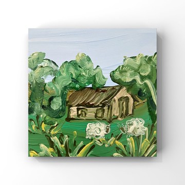 小屋房屋藝術鄉村房屋油畫原創鄉村小屋房屋花園