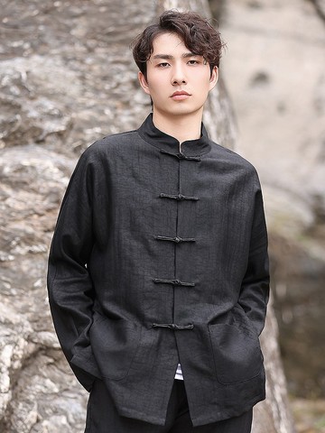中式復古 極簡盤扣寬鬆亞麻襯衫