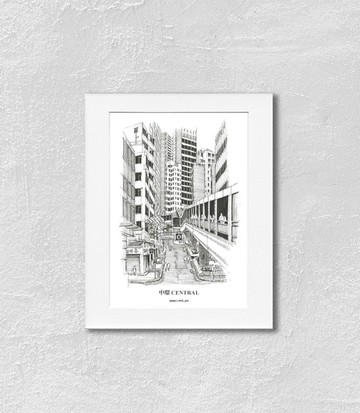 A5 香港手繪中環街景掛畫