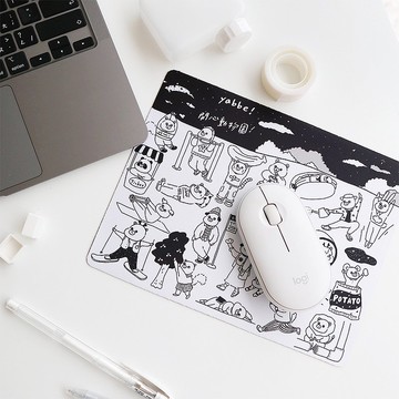 開心動物園滑鼠墊Size:18x23cm圖案面為珍珠布,背面為黑色止滑發泡橡膠yabee!開心動物園!每天畫三隻奇奇怪怪的動物,有些是平時生活中的夥伴,像是快遞員、修冷氣師傅、賣蚵仔煎老闆之類的,有些是天馬行空的動物,像是下墜到宇宙黑洞的兔子、搭番茄氣球去旅行的松鼠,有興趣可以來instagram:yabee.zoo看看我們每天的開心動物園!