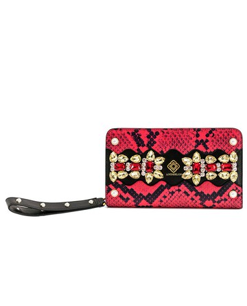 ANDERLOS 蛇紋印花寶石手拿包 奢華紅