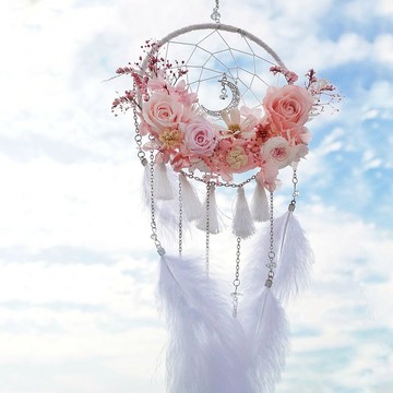 ===關於Angemara===Angemara愛花知花,善於利用花朵自然的美,創作押花及永生花的手創產品,不僅讓您的生活擁有獨一無二的美好,更可以把這「手創花藝禮品,送給您最在乎的人」!===捕夢網===捕夢網是北美印第安人的傳統手工藝品,他們相信捕夢的「網」不只是「編織夢想」,更可「驅除惡夢」,所以家家戶戶總會有一個,根據美國原住民傳說,人們相信好夢和壞夢會在夜間飄浮在空中。在捕夢網附近睡覺時,噩夢將被捲入網中,並在第一天早晨的陽光下被摧毀。美好的夢想將穿過中心孔,沿著網狀前進,抓住石頭和珠子的所有美好能量。然後,好夢就順著羽毛飄落到頭上。Angemara永生花捕夢網,加上美麗的花朵,讓你的房間裡充滿生氣,更帶給你美好的心情,不僅僅是裝飾,更給予你正面的能量,編織您的夢想祈求一切願望的能夠實現,給予你力量,引領你堅持並完成。捕夢網就是扮演幫助你維持生命平衡的角色,而每一件配件分別代表著通往夢境的道路、情感保護、心靈成長,祈求著你的身體、靈魂與精神都能達到安定與平衡。===產品規格說明===✿浪漫的粉紅捕夢網裝設計各種永生花朵,包括永生玫瑰,永生滿天星,永生石蓯蓉,永生蕨類,永生繡球花和索拉花。✿可以在索拉花中加入幾滴精油,使房間散發出芳香的香氣。✿圓形捕夢網直徑約為15公分,整個捕夢網(包括羽毛吊飾)的長度為50公分。✿月亮護身符、白色羽毛、流蘇、串珠吊飾。✿捕夢網採用三種不同的顏色主題:浪漫的粉色,夢幻的紫色和充滿活力的蒂芙尼藍色。✿請查看設計館中的其他品項,以了解可用的樣式和顏色。✿捕夢網將放在包裝盒中,使用進口緞帶包裝,對於任何人或你自己來說,這都是一個完美的禮物。將這個美麗的永生花與捕夢網的結合,掛在房間的任何地方,再也不用擔心噩夢了。擁有美好的夢想,享受美好而寧靜的睡眠。===客製化說明===捕夢網還可以使用刻在木片上的名稱,短語進行客製化。請查看最後3張照片作為示例。===什麼是永生花===永生花又稱不凋花,是用100%的新鮮花材,經過了特殊安全無毒製程處理,使保有與鮮花一樣的質感,卻不需要陽光及水來維持花的生命,正確的保存方式可以讓花持續存放約3年。 ===如何保存永生花===✿本作品妥善保存可以存放3年以上。✿請避免陽光長期直射。✿請避免潮濕(濕度建議35%~65%)✿請不要澆水或放在水中。✿可用軟毛筆輕揮或用吹灰塵球清理花上的灰塵。✿請益免按壓或彎曲花瓣。===製作及寄送資訊===✿每個作品都是我們手工完成的,在您訂購後我們會馬上製作,通常5日內會寄出作品。✿寄送地點*台灣:依照您選擇的運送方式出貨*香港 澳門/中國及其他地區:所有貨品會以順豐寄出(偏遠地區及離島除外)。 歡迎客人留下順豐取貨點地址(順豐站或智能櫃)*歐美其他地區: 我們會以台灣郵局寄出,大多數的區域約 2-3個禮拜可以寄到✿寄送注意事項*所有出入口關稅均由買方負責*海外訂單運送時間都包含繁複的清關程序,未能確保實際到貨時間,恕不接任何急件*所有產品從台灣寄出, 我們並不能準確預測所有訂單的收貨日期, 特別是海外訂單!必須視郵局及當地海關的流程和清關程序, 不是我們能操控的範圍唷, 請客人們耐心等候。===其他事項===✿請注意,因為是真花,所以花的大小、顏色和形狀會有細微的差異。我們會盡力做到您選擇的樣式,但會不完全相同,因為手工製造的結果有輕微的差異,不同的電腦螢幕也可能會有色差。每一個產品都是獨一無二的,所以不會有完全相同的作品唷!✿產品寄出前我們會完整包裝,但寄送過程中仍可能會有些許掉落情況,屬正常現象,花材的量也已預先添加,不會因掉落而影響美觀,請放心!✿退換貨說明:https://pinkoi.com/policy#~g✿申請退款連結:https://pinkoi.com/my/refund