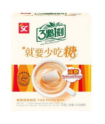 少一分糖,多一點茶味,與原味奶茶相比,糖含量減少26%。符合現代人健康概念,將原本經典奶茶系列糖份減少,並增加茶葉添加量,3點1刻減糖奶茶讓您品嘗到最真實的奶茶原味,喝奶茶不再有罪惡感。多元化的口感與氣味風格,溫潤甘甜中帶著濃郁奶香及蜜茶香,冷藏後口感更香濃。※ 本產品含有牛奶及其製品,請消費者購買時仔細閱讀成份標示。【冷藏奶茶】①將茶包放入杯中②注入200c.c.沸水 ③浸泡3-5分鐘並輕輕攪拌④待奶茶溫度降至可放入冰箱 ⑤密封後置入冰箱4-6小時即可取出享用。重要:過程中無需將茶包取出,隨著冷藏浸泡,茶味更加濃厚。【手作奶茶】①注入鍋內100c.c.飲用水並煮沸②將茶包放入 ③開至小火輕輕攪拌1-2分鐘後④蓋上鍋蓋靜置,待奶茶溫度降至可放入冰箱 ⑤置入冰箱4-6小時即可取出享用。重要:過程中無需將茶包取出,隨著冷藏浸泡,茶味更加濃厚。 鍋子務必清潔乾淨,避免沾附其它味道,影響風味。