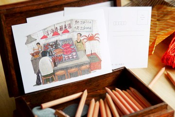 插畫明信片 - 等一個人海產店