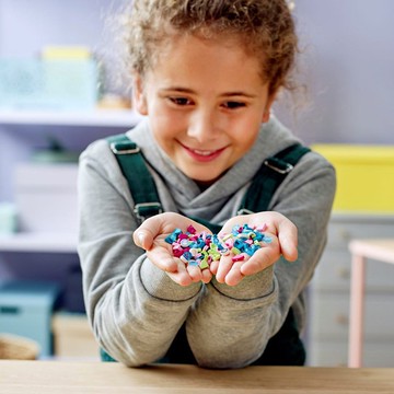 用 1號豆豆補充包 隨心所欲創作!把半透明亮片與可愛裝飾等趣味飾片加到您的 LEGO® DOTS™ 手環或房間 DIY 飾品上,展現您的個性,打造出無限多種可能的圖案與組合。準備好發揮想像力了嗎?隨心所欲創作與重新創作趣味設計!喜歡工藝品的孩子與美工迷會喜愛這款酷炫的 LEGO® DOTS™(41908)1號豆豆補充包!這些補充飾片專門設計用來搭配其他 LEGO DOTS 盒組使用,讓孩子有機會用有趣的新方法為他們的設計增加細節,並配合他們的服裝、心情或房間裝飾改變設計。創意補充包這款優質補充包內附 109 片彩色飾片,包括 20 片藍色半透明閃亮飾片與 10 片特殊印花飾片,讓孩子用來裝飾屬於他們的創意首飾或房間飾品、培養他們的想像力,並隨心所欲享受表現自我的樂趣。更多美術工藝品讓設計更有趣這款補充包的樂趣在於讓孩子有機會進一步發揮想像力,隨心所欲裝飾他們的 LEGO® DOTS™ 產品來配合他們的心情、與好友混搭,以及展示屬於他們的獨特設計。這些飾片適合當作超棒的聖誕或生日禮物,購買其他 DOTS 盒組時也是很好的加購選擇。.用這款飾補充片包培養孩子對創意 DIY 的愛好,內有 79 片 4 種顏色的飾片、20 片藍色半透明閃亮飾片,還有 10 片印花飾片(共 16 款,內附款式是驚喜!)。.展示創意!孩子用這些超棒飾片動手裝飾,無論是參考不同 LEGO® DOTS™ 盒組的圖案或自己想出新點子,都可以同時發展他們的設計與自我表達能力。.色彩繽紛的1號豆豆補充包(41908)適合搭配不同 DOTS™ 盒組或其他樂高® 盒組設計新作品,帶來創意美工的樂趣,.DIY 迷或美工迷都會喜愛將這款 1號豆豆補充包(41908)加進他們擁有的其他盒組。新的顏色與飾片適合送給 6 歲以上男孩與女孩,當作任何日子的趣味禮物。.小巧而輕便。這款可愛的 DIY 創意包非常適合小小設計師加入他們的創作,接著在他們的手環或房間飾品展示他們的新設計。.孩子的想像力就是動力,樂趣與創意永遠不斷電!不用電池的玩具有助提升孩子獨立遊戲的能力,還能帶給他們獨力創作新事物的快樂。.打開包裝即可開始創作。此補充包有多種新顏色與可愛飾片,可以帶來更多創意樂趣。孩子可以將飾片加進其他 DOTS™ 房間飾品或穿戴品盒組!.用 LEGO® DOTS™ 盒組讓孩子創作酷炫工藝品。這款手環與房間飾品盒組用的趣味補充包帶來自由不受限的設計靈感,有助培養孩子的創意與自信。.樂高® 飾片符合業界最高標準與我們自己的品質標準,因此保持一致、彼此相容,而且每次都能緊密組合與輕鬆拆解。.樂高集團對樂高® 飾片進行拋落、擠壓、扭轉、加熱、啃咬、彎曲、刮痕、延展測試,以確保每款兒童拼砌玩具都符合全球最高安全與品質標準。.用這包酷炫飾片補充包啟發 DIY 創意與表現自我的遊戲!.藉著自由美術工藝啟發的創意發展設計能力。.將飾片用來創作酷炫設計,或搭配其他 DOTS™ 產品使用!.用這套啟發創意的趣味盒組讓美術工藝迷開心不已。.加在可穿戴作品與其他創作的小巧、輕便裝飾。.動力來自想像力,不需電池。創意樂趣不斷電!.飾片一組合,遊戲與樂趣馬上開始,而且永遠不間斷!.可愛裝飾的飾片與新色飾片可啟發創意與想像力。.樂高® 顆粒與飾片符合各項品質標準,因此每次使用都順手。.樂高® 顆粒與飾片符合全球最高安全與品質標準。