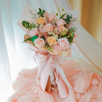 鮮花 / 新娘捧花 / 優雅粉白 玫瑰捧花