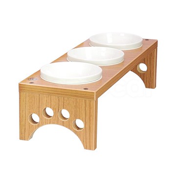 年度熱銷明星商品【MOMOCAT摸摸貓】D11。小型犬貓餐桌**本款特色**市面大量製造的餐桌碗架無法符合實際高度需求,即使提高餐碗,仍無法減輕用餐時對身體的負擔。小型犬貓餐桌自2011年開賣,堅持台灣在地生產,MIT工廠直營,累積長久經驗與觀察,開發出測量適用高度的方式,為毛孩客製高度,量身訂做最適合的貓狗餐桌。**如何選擇適合的高度?**第一種方式:當貓狗四腳站立、脊椎呈水平時,測量從地面到腋下的高度。(如圖片所示)第二種方式:參考選購指南中建議高度的表格。**特別注意事項**各款碗架皆有個別商品頁,高度請至該頁面選擇。付款前請務必確認商品內容,付款後恕不提供修改訂單、換木色、換碗服務。本商品為客製化手工製品,不適用七天鑑賞期法規。木製商品為純手工製作,無法如自動化機器大量製作般精準完美;桌腳裝飾洞無法做封邊處理,有打磨,可能有毛邊但不扎手;木板切口剖面可能有天然孔洞、蛀洞等皆為正常現象,恕不受理退換貨。木板切口剖面無上漆,長期泡水可能會有發霉的情況。無法接受者請改選購完全防水的PP發泡板組合式餐桌或壓克力水晶餐桌。【品名】小型犬貓餐桌【口數】三口【木色】黃金柚木色(因各款螢幕顯色程度不同,照片木色與實際木色可能有些許色差,出貨將以實際木色為準)【餐碗】強化瓷碗3個(強化瓷碗只有一種尺寸,深4cm可裝飼料或水。耐高溫可微波、耐刮洗不易滋生細菌)【材質】寵欣板、ABS防潮框★SGS檢測符合低甲醛標準特級寵欣板,無刺鼻氣味,高承重實木條,不易吸溼軟化!★仿木色塑膠雙面貼皮(非廉價玻麗貼皮),永久防水不吸臭(非松木上漆防水,所以不會掉漆),吐毛可用菜瓜布刷!清潔、消毒好衛生!★首創系統家具塑膠厚質封邊,邊角圓潤厚實,不割手、不脫落,質感更優更安全!★置碗圓孔皆有白色防潮框,因3號白鐵碗與3號瓷碗有碗徑誤差,故防潮框的兩面粗細不同(A面較細朝上適用鐵碗,B面較粗朝上適用瓷碗),若餐碗與碗架不合,請將防潮框拆下換面後再裝上。2015年前的舊款碗架碗口直徑較小,無法使用防潮框。【尺寸】長45cm x 深15cm,碗口直徑約11cm,碗距4cm,高度可選擇11、13、15、17cm【重量】碗架約430g、瓷碗約190g【產地】台灣手工製作https://www.momocat.com.tw/momocat-product/Pinkoi01.pnghttps://www.momocat.com.tw/momocat-product/Pinkoi02.png
