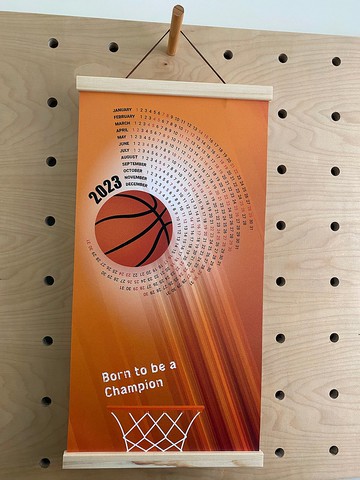 籃球年曆以有別以往的方式呈現,淺色木製夾條固定(強力磁鐵吸附)並附上掛繩,可直接吊掛於牆面釘子或者掛鉤上。居家、工作室、餐飲、商業空間都很不錯呢!/ 年曆尺寸/ 30X60 cm(不含木製夾)/ 內容/ 單面年曆x1張,木製夾x1組/ 主要材質 / 印刷油畫布/ 清潔方式 / 雞毛撢子,不含酒精濕紙巾,毛巾沾濕擦拭(不能浸水) 歡迎私訊討論:客製名字,球號,一句激勵的話都可以喔!客製化下單連結https://www.pinkoi.com/product/uSzbyLWx產地/製造方式Design by Mijas / Made in Taiwan