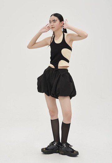 超強造型感 鏤空背心兩件套 萬能穿搭 (可分開搭配!) 性感黑膚