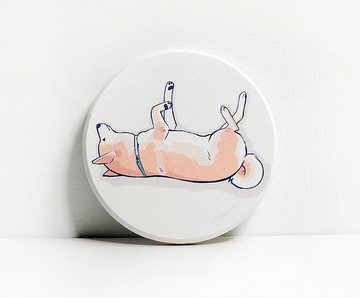 珪藻土吸水杯墊 慵懶柴犬2