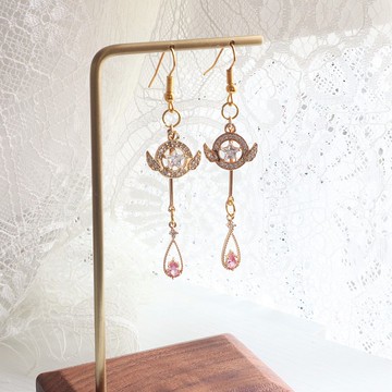 甜美的魔法師 · カードキャプターさくら【設計靈感】靈感來自百變小櫻的星之杖有點天真傻氣,面對困難也十分勇敢。此款耳環並不是採用滴膠,而是鋪滿充滿高貴感的鋯石。尾端使用了小櫻的代表色 – 櫻花粉紅色水滴形狀,可以修飾臉型喔!【商品資訊】尺寸:長 (耳夾) - 約5.5cm長 (耳勾) - 約6cm寬 - 約1.5cm材料:S925防敏感耳勾、電鍍18k金色星之杖吊墜、電鍍18k粉紅水滴吊墜包裝:牛皮紙盒及防潮收納袋♡︎ 適合打卡、日常約會配戴 ♡︎!!請注意!!‧如客人希望加減耳環配件,請先聯絡我們再下單喔!‧購買耳夾的朋友請在備註欄選擇自家製軟墊耳夾或螺旋耳夾,如沒註明會隨機選擇‧基於衛生問題,貨品不設退換‧建議每次配戴後放入防潮收納袋,以延長保色時間‧請儘量避免沾水‧人手制作無法保證零瑕疵,完美主義者請斟酌購買