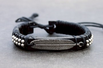 皮革串珠手鍊男士中性羽毛魅力Adjsutable