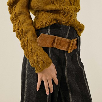 |商品資訊- 腰寬35cm- 臀寬45cm- 全長95cm- 高腰輪廓。- 有腰帶孔,附腰帶。- 條紋絨面面料。- 寬鬆褲腳。- 產地材質標籤佚失。|關於古著那舒比商品皆是古著,並非全新商品。每一件在上架前皆經過仔細的清理與檢查,任何在外觀上超過「2cm」的污漬或是破損,我們都會在描述中清楚標記。不過古著畢竟不是全新商品,不免會有一些使用感,例如細部脫線、輕微脫色、細微斑點,我們無法逐一描述,若您是對於衣物狀況相當要求的客人,有任何疑慮都歡迎您傳訊息詢問,我們將盡力回答。|關於尺寸商品尺寸皆是平放測量的寬度,人工測量可能存在「2cm」內的輕微誤差,實際尺寸請以商品為準。建議您在購買前先確認尺寸,減少收到實際商品時尺寸不合的問題。若對服裝大小比較沒有概念,可以利用我們提供的尺寸,與現有的衣物實際測量比較,會更加準確。|關於色差商品皆以高階數位相機拍攝,已盡量將商品顏色誤差縮減至最小,但由於不同載具的螢幕顯色不同,加上每個人主觀判斷差異、觀看光線明暗度等等不可控制之因素,我們無法保證商品完全無色差。對商品顏色較為要求之顧客,建議下單前先向我們詢問。