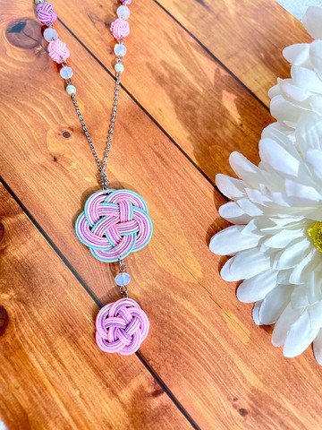 水曲柳項鏈 梅花結 粉紅色 綠色 紫色