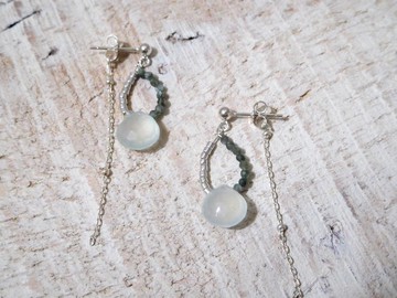 純銀胖水滴型綠玉隨綠龍晶石前後扣耳環
