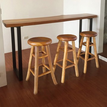 榆木實木 圓形 咖啡色鐵腳 中島椅