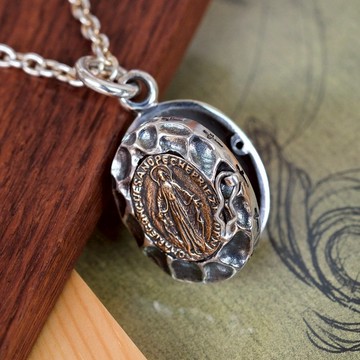復古岩紋聖母相片盒項鍊墜飾 925純銀飾 單墜價