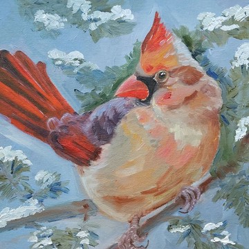 紅衣主教繪畫原創藝術雀畫油畫維拉的小畫