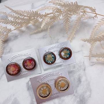 適中的尺寸,讓您能細細品味花朵的質感。以耳環形式呈現 (獨一無二)。我們選用對金屬過敏者也能安心配戴的材質。● 耳環直徑 12mm / 厚度 6mm針腳:醫療級不鏽鋼,對金屬過敏者適用半月形飾片:木質、樹脂、乾燥花▷ 保養說明木質部分由於使用樹脂,日常使用的汗水或短暫淋浴並不會造成損壞。請避免長時間浸泡在水中。▷ 金屬部分醫療級不鏽鋼耳環此材質不易造成金屬氧化。若有髒污,請用柔軟的布或紙巾擦拭。我們將附上醫療級不鏽鋼耳針。同時也會附上矽膠耳帽。