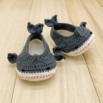 藍鯨鉤針編織嬰兒靴鞋類涼鞋幼兒可愛魚鞋