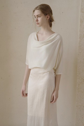 蠶絲混紡 蕩領蝙蝠袖針織短袖針織上衣