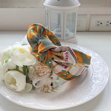 台灣文青-拼布棉麻布綁結蝴蝶結髮箍頭箍髮飾-水果與紙箱